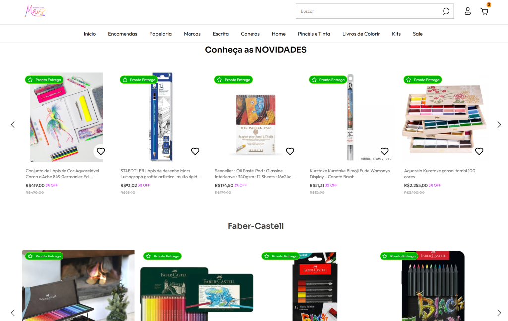 A loja reúne produtos para diferentes perfis, desde itens para uso escolar até materiais mais completos para quem trabalha com arte ou leva a prática de forma mais profissional. Naturalmente, o catálogo também foi se ampliando, incluindo: