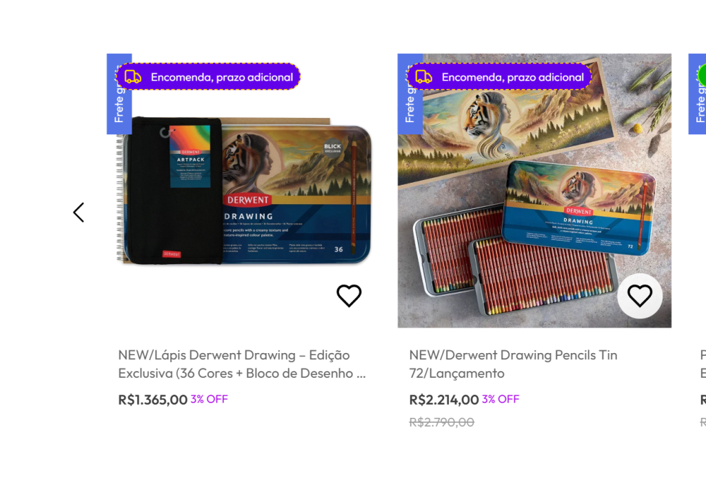 Depois da configuração, cada item passou a mostrar o tempo correto diretamente na página. Produtos disponíveis para envio imediato continuaram com prazo curto, enquanto os itens sob encomenda passaram a exibir o tempo de produção antes da finalização do pedido.