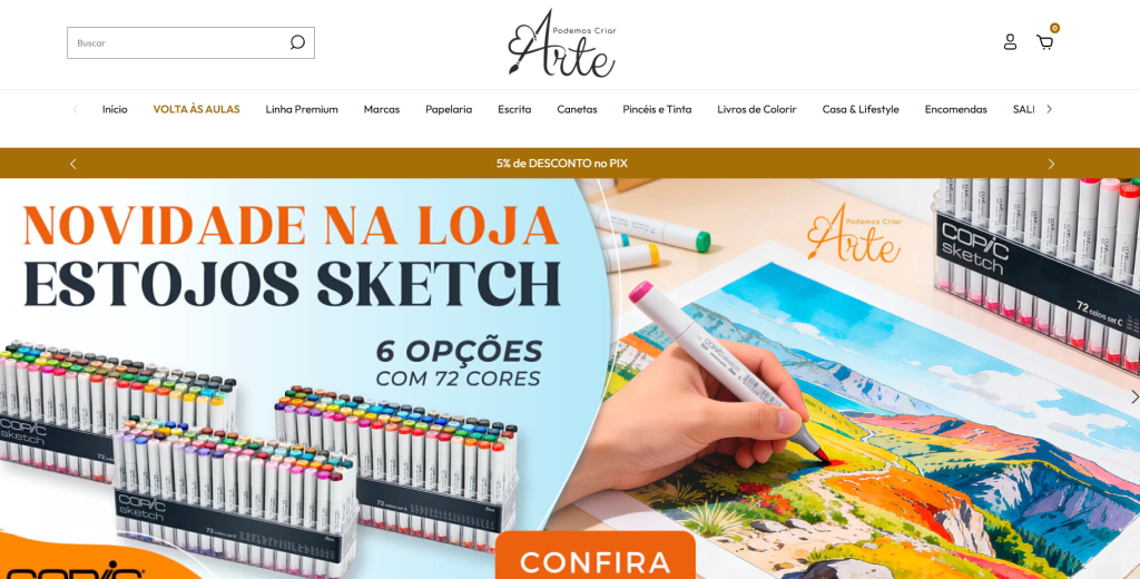 Para reorganizar o site, a Podemos Criar Arte contou com o acompanhamento da by harold, agência com mais de 30 anos de experiência em vendas e marketing digital, especializada em e-commerce e parceira oficial das plataformas Nuvemshop e Shopify.