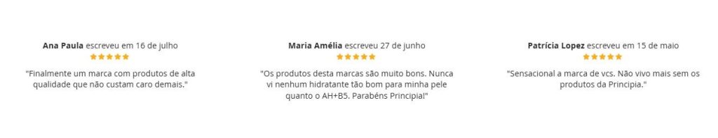 As provas sociais são um elemento central nas estratégias de marketing da Principia, especialmente por se tratar de produtos que impactam diretamente a saúde da pele. Avaliações, comentários e notas ajudam a validar a experiência de outros consumidores.